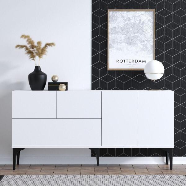 Bemutatjuk lenyűgöző és sokoldalú konzolunkat, amelyet úgy terveztünk, hogy egy csipetnyi eleganciát és kifinomultságot vigyen életterébe. Elegáns és modern kialakításával ez a konzol tökéletes kiegészítője bármely lakberendezési tárgynak, és bármely helyiséget stílusossá és ízlésessé tesz. Felemeli a terét Alakítsa át nappaliját, előszobáját vagy előszobáját ezzel a gyönyörű konzollal. Letisztult vonalvezetése és minimalista kialakítása a nyitottság és a tágasság érzetét kelti, így a tér nagyobbnak és hívogatóbbnak tűnik. Akár kedvenc dekorációs darabjait állítja ki, akár funkcionális tárolási megoldásként használja, ez a konzol könnyedén feldobja otthona megjelenését és hangulatát. Páratlan minőség Ez a konzol 100% melaminbevonatú forgácslapból készült, így tartósan megmarad. A tartós konstrukció hosszú élettartamot biztosít, így Ön évekig élvezheti a szépségét. A melaminbevonat extra védőréteget ad, így ellenáll a karcolásoknak, foltoknak és a mindennapi igénybevételnek. Kényes és stílusos A fehér és fekete színek kombinációja elegáns és stílusos megjelenést kölcsönöz ennek a konzolnak, amely bármilyen meglévő bútort vagy színösszeállítást kiegészít. A kontrasztos színek vizuálisan feltűnő hatást keltenek, drámaiságot és kifinomultságot kölcsönözve a térnek. Technikai részletek: