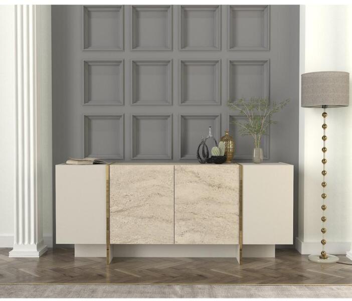 Átalakítsd a lakóhelyét lenyűgöző konzolunkkal, amelyet 100% melaminnal bevont részecskeszkából készítenek. Ez a konzol nem csupán egy bútor, hanem egy olyan műalkotás is, amely megemeli bármely szoba hangulatát. Elegáns tervezés A konzol karcsú és modern kialakítású, a travertin és a homokkő színek kombinációjával, amelyek kifinomultak és stílusúak. A tábla 18 mm -es vastagsága biztosítja a tartósságot és a hosszú élettartamot, így időtlen kiegészítést jelent az otthoni dekorációhoz. Sokoldalú tárolás A 180 cm -es szélességgel és számos polcral ez a konzol bőséges tárhelyet kínál minden alapvető eleméhez. A 60 cm-es kabinet magassága és a kiegészítő tárolókarok tökéletessé teszik a holmik megszervezését és a hely rendetlenségének megőrzését. erős konstrukció A konzol erős lábakon áll, 15,5 cm magasságban, stabilitást és támogatást biztosítva az összes elemhez. Függetlenül attól, hogy a nappaliban, a folyosón vagy a hálószobában használja, ez a konzol minden bizonnyal nyilatkozatot tesz, és a szoba fókuszpontjává válik. Frissítse otthonát finom konzolunkkal, és tapasztalja meg a funkcionalitás és a stílus tökéletes keverékét. Rendelje meg ma a sajátját, és adjon hozzá egy kis eleganciát a lakóhelyéhez. Műszaki információk: