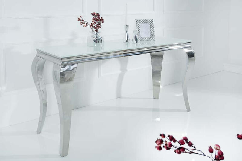 A Rococo konzolasztal a klasszikus barokk elegancia és a modern lakberendezési trendek tökéletes találkozása. A barokk stílusra jellemző, látványosan ívelt vonalvezetés és a kifinomult anyaghasználat már első pillantásra luxust sugároz. Ez a karakteres dizájn a stílus iránti kifinomult ízlésedet tükrözi, és minden helyiségnek különleges, egyedi kisugárzást kölcsönöz. A konzolasztal pompás megjelenését a kecsesen ívelt asztallábak és az elegáns, fehér opálüveg asztallap határozzák meg. Ez a kombináció különleges fényt és ragyogást visz otthonodba, miközben az egy centiméter vastag, könnyen tisztítható asztallap tartósságot és hosszú élettartamot biztosít. A Rococo tökéletes választás, ha egy olyan bútordarabra vágysz, amely garantáltan a figyelem középpontjába kerül.
