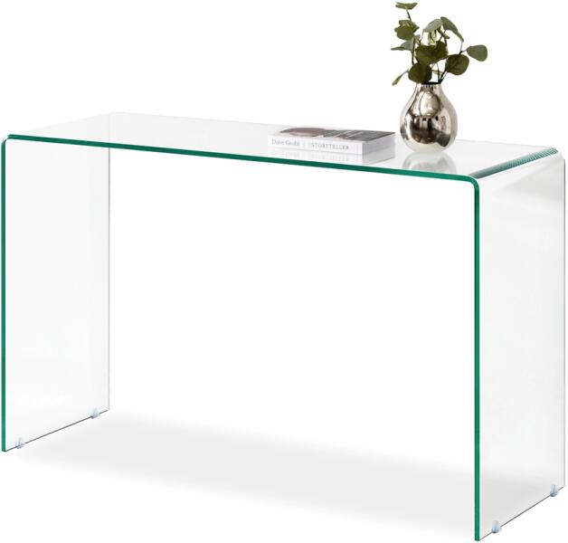 EMERALD üveg konzolasztal – kortárs elegancia és légies design Az EMERALD konzolasztal letisztult formájával és áttetsző megjelenésével a modern enteriőrök tökéletes kiegészítője. Az egyetlen darabból hajlított edzett üveg harmonikusan egyesíti a funkcionalitást az esztétikummal, így nem csupán egy bútor, hanem valódi lakberendezési ékszer. Tökéletesen használható előszobában, hálószobában, nappaliban , sőt akár egy elegáns dolgozósarokként is funkcionálhat. Főbb jellemzőkHajlított edzett üveg – légies és modern megjelenés, amely egyedi formát kölcsönöz az asztalnak. Áttetsző konstrukció – vizuálisan tágítja a teret, tökéletes választás kisebb helyiségekbe is. Védőtalpak – az asztal alján elhelyezett műanyag stoplik védik a padlót és a bútort is. Funkcionalitás és esztétika egyetlen elemben Az EMERALD ideális választás:mint előszobai konzolasztal kulcsok, dekorációk vagy virágok elhelyezésére;mint toalettasztal a hálószobában, ahol rendezetten tárolhatók a kozmetikumok;mint díszasztal a nappaliban , fényképek, gyertyák, könyvek bemutatására. Időtlen stílus bármely enteriőrhöz Az áttetsző üveg minden stílushoz alkalmazkodik : modern, minimalista, skandináv vagy glamour terekbe is tökéletesen illeszkedik. Világosítja és könnyeddé teszi a teret, anélkül, hogy elnyomná az egyéb dekorációs elemeket. MéretekSzélesség: 120 cmMélység: 40 cmMagasság: 75,5 cmVálassza az EMERALD konzolasztalt, ha:különleges, mégis praktikus megoldást keres;szereti a modern, átlátszó bútorokat, amelyek világosítják a teret;fontos Önnek az esztétikum, de nem mondana le a funkcionalitásról sem. EMERALD – a stílusos üvegasztal, amely kiemeli otthona eleganciáját.